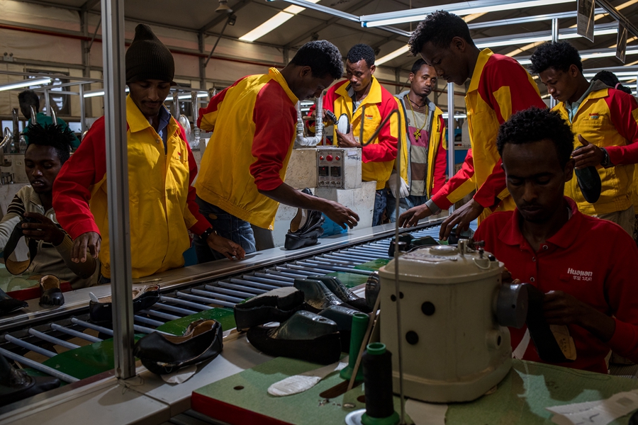 ????2014年,一些中國企業在埃塞俄比亞投資的項目中,當地員工人數就占到90%。而目前在建的華堅工業園生產女鞋的工廠內,中非工作人員的比例達到1:20以上。