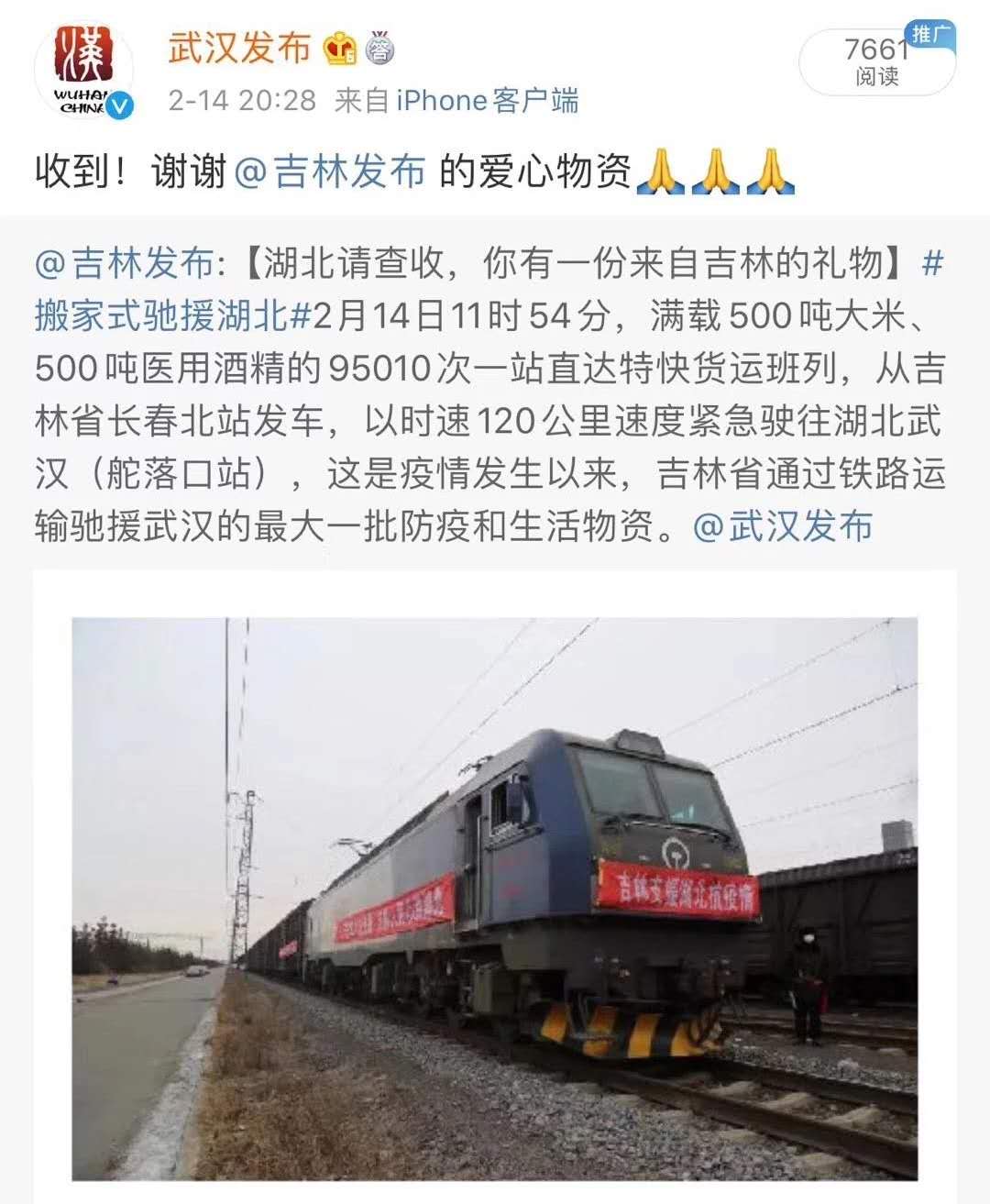 3.吉林1000噸援助物資飛奔而來 湖北、武漢隔空喊話:“謝了,吉林老鐵!”