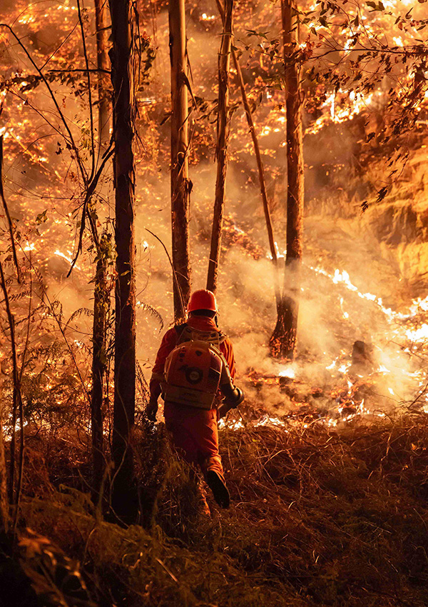 12月7日,來自英德東華鎮的消防隊員正在撲滅大面積的烈火。