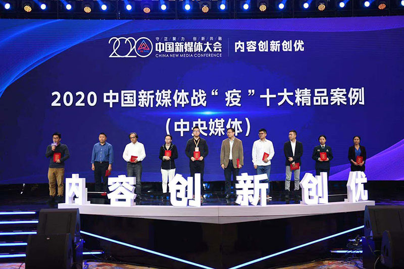 2020中國新媒體戰“疫”精品案例(中央媒體)獲獎單位代表上臺領獎。