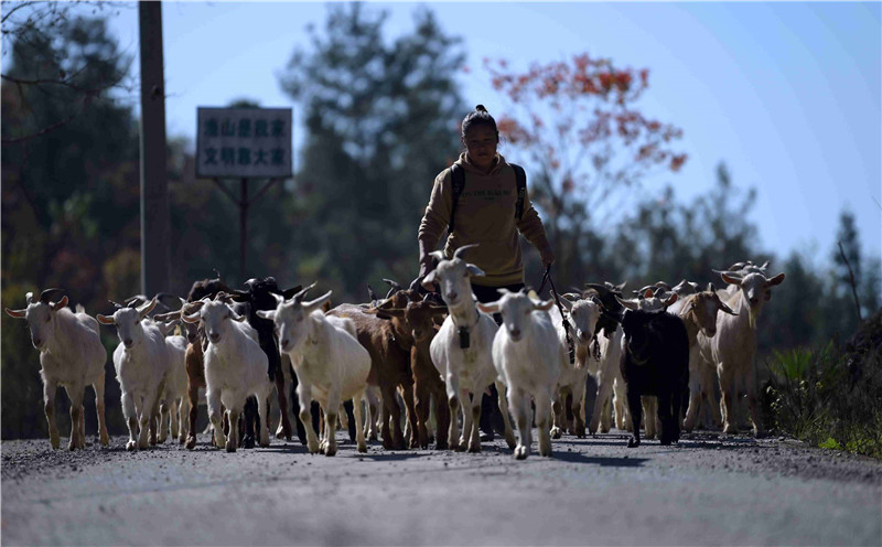 村民陳子祥也嘗到了甜頭。此前,因病致貧的他致富無門。公路通后,他和妻子張春年養起了山羊、黑豬和土雞。去年,全家僅養殖這一項收入就超過了5萬元。