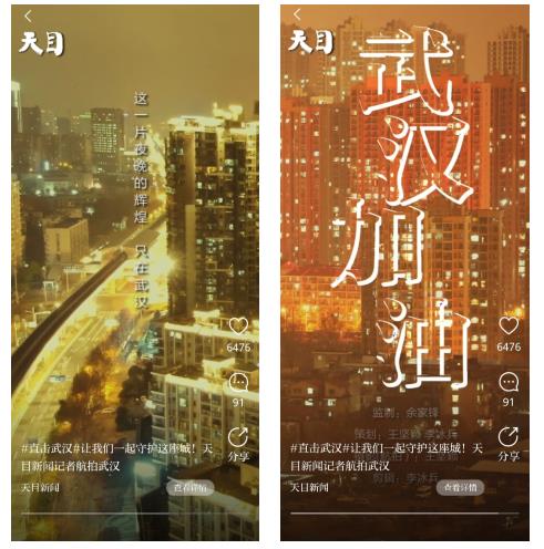 直到有一天,記者爬上天臺時已經到了傍晚,突然發現夜晚的城市高樓間布滿了密密麻麻的萬家燈火,當即決定再用無人機拍攝夜晚的武漢。視頻里,無人機的鏡頭飛過武漢高樓。整個城市燈火通明,有著白天感受不到的生命力。每幢高樓里的每一盞燈,背后都是一個堅守的武漢家庭。燈火閃爍,有如一座城市不屈的心跳?,F場畫面還記錄下了動人的一幕:天臺上的醫療隊員在黑夜里舉起手機,他們手機屏幕上的燈光與武漢的萬家燈火相互呼應。拍攝完成的素材傳到后方編輯部,編輯在這個場景上加了一句字幕:“這一片夜晚的輝煌,只在武漢。這閃動著的守候的明眸,只是在祈禱、在等待?!?/p>