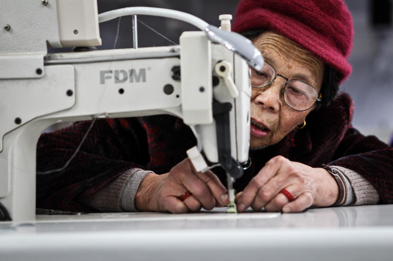 圖一:2013年,背負巨債的陳金英為了節省支出,辭退了大部分的工人,自己也當上了縫紉工。