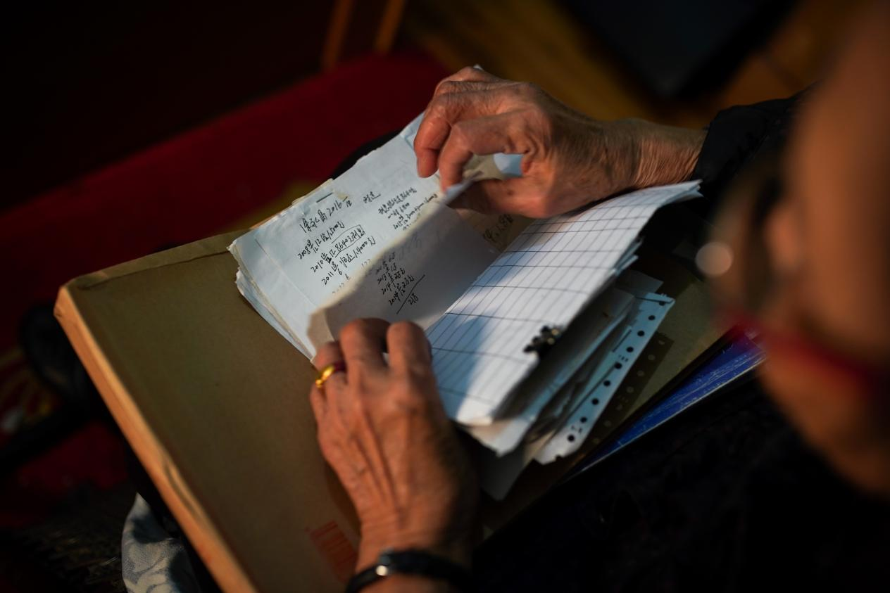 圖七:2021年2月,老人用算盤核對著最后一筆債務。