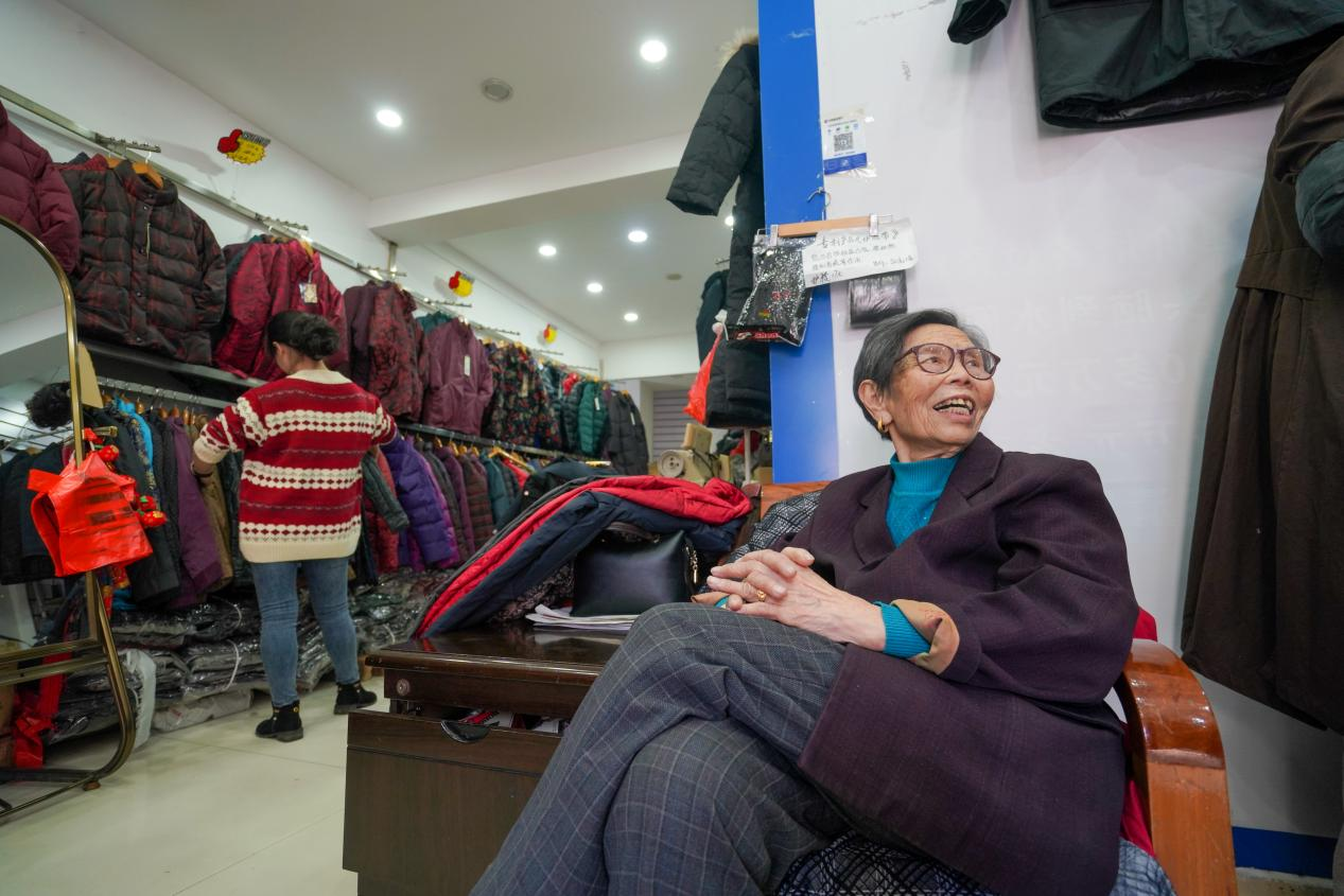 圖八:2021年2月7日,還清了所有債務、一身輕松的陳金英在自己的店鋪中展露了許久未見的笑容。