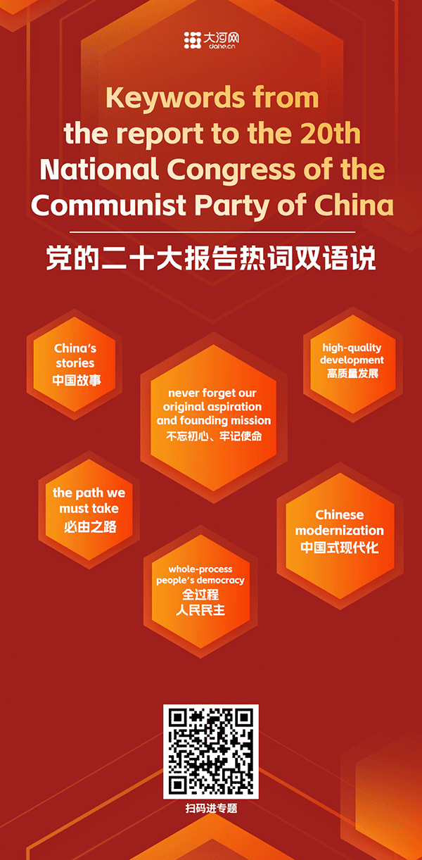 通過15個關鍵詞詮釋黨的二十大報告精神,主題突出,重點明確。在海內外平臺同時發布,以雙語海報形式進行可視化傳播,和海內外網友一起品讀報告熱詞,解析中國方案,傳播中國理念。