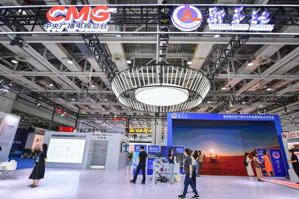 7月12日,2023中國(guó)新媒體大會(huì)中國(guó)新媒體技術(shù)展現(xiàn)場(chǎng)。新華社記者 陳澤國(guó) 攝