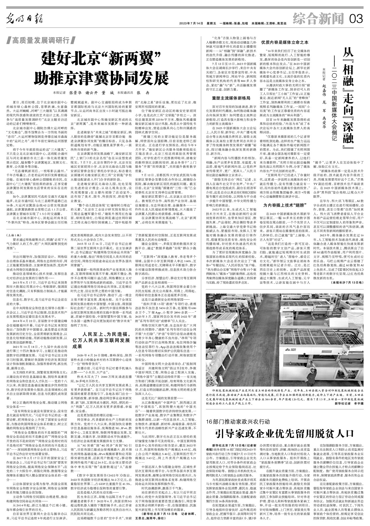 7月12日至13日,2023中國新媒體大會在湖南長沙舉行,來自中央有關部門、各省區市黨委宣傳部、中央和地方新聞單位、網站平臺、新聞院校和研究機構的代表等800多人參會,緊扣“融”與“新”,共話融媒發展的守正之道、創新力量。