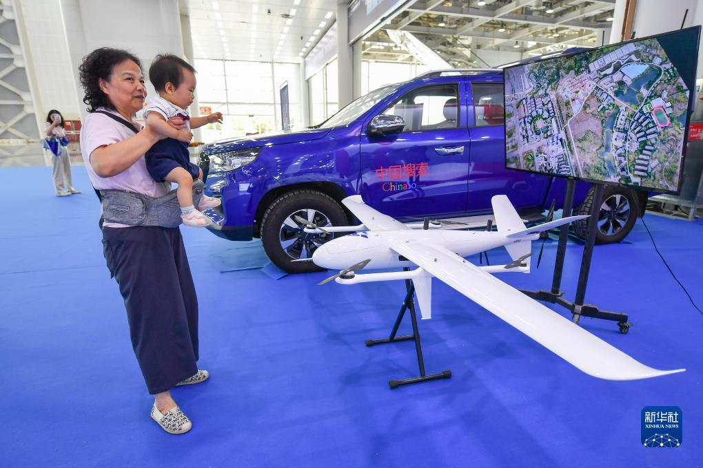 7月12日,參觀者在中國新媒體技術(shù)展上參觀無人機(jī)設(shè)備。新華社記者 陳澤國 攝