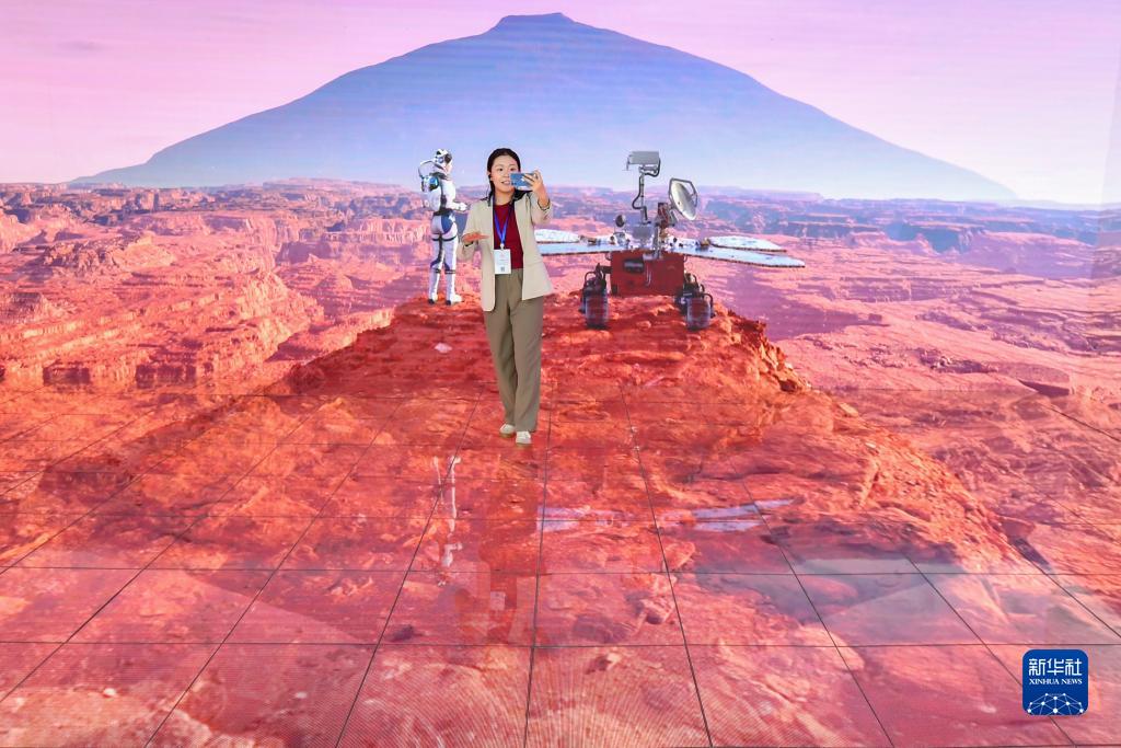 7月12日,參觀者在中國新媒體技術(shù)展上進(jìn)行航天元宇宙沉浸式體驗(yàn)。新華社記者 陳澤國 攝