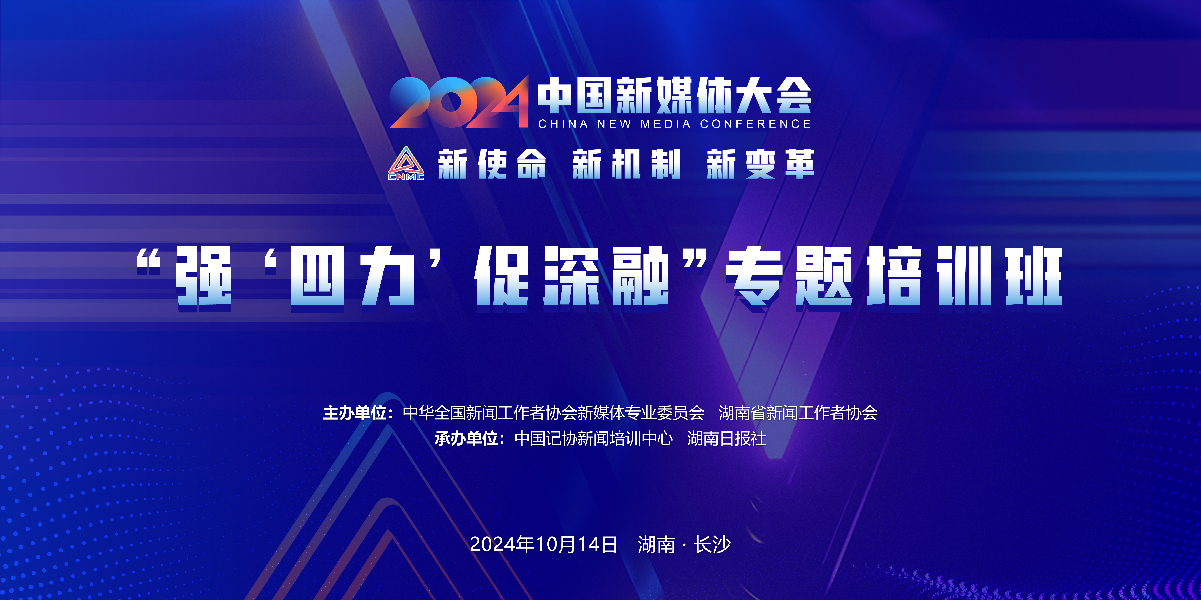 2024中國新媒體大會“強‘四力’ 促深融”專題培訓班結合新聞戰線學習宣傳貫徹黨的二十屆三中全會精神等重大主題報道,邀請長江韜奮獎、中國新聞獎獲獎者,新聞院校專家學者以及商業傳播平臺負責人等,結合鮮活案例,分享主題報道創新創優經驗,研判新技術新應用新趨勢,幫助新聞工作者持續增強“四力”、踐行馬克思主義新聞觀、切實提升融媒業務能力。