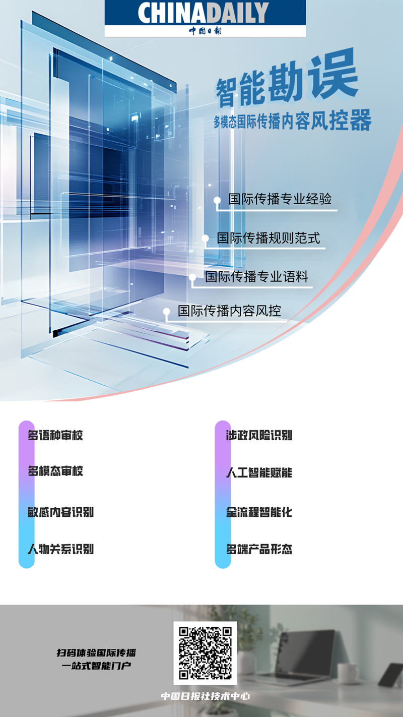 中國日報社智能勘誤系統以“經驗服務化”為核心,以人工智能技術為支撐,以文化敏感識別和生成式人工智能技術應用為創新亮點,創造性地將大數據和人工智能技術應用于英文新聞報道的質量保障和內容風險防控。特別是將中國日報社獨有的編輯體例規則化,為國際傳播領域提供了在英文表達和規則范式方面的獨特經驗,為防控英文內容安全風險、保證意識形態安全提供技術手段,在國際傳播領域開創智能化內容風控先河。